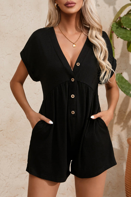 Black V Neck Short Romper