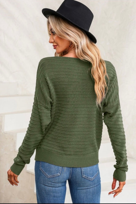 Textured knit round neck sweater