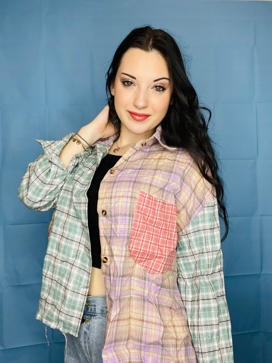 Off the Shoulder Plaid and Leopard Long Sleeve