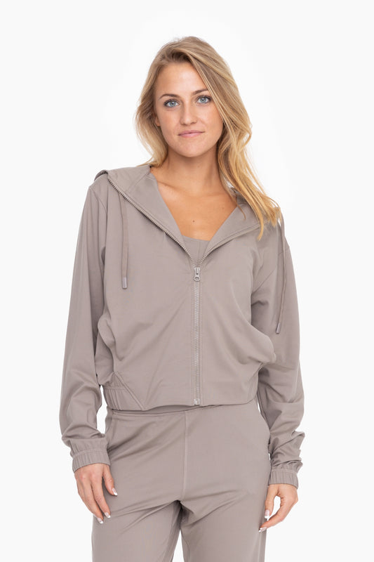 WASHED DRAWSTRING HEM HALF ZIP KANGAROO HOODIE