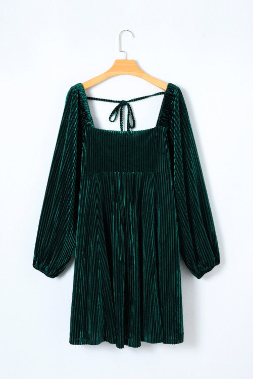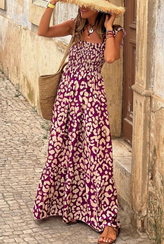 Brown Boho Floral Ruffled Puff Sleeve V Neck Dress